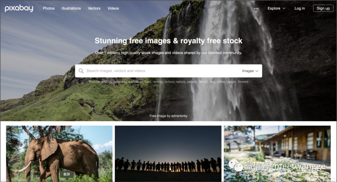 拥有1.5百万张免费图片和视频素材,部分带水印的Shutterstock收费;支持中文搜索。