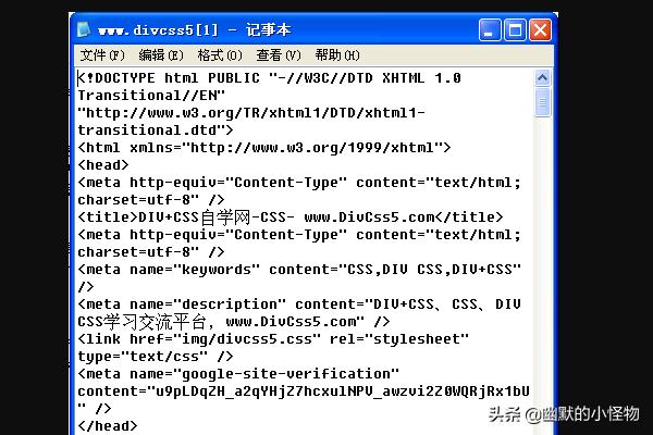 第一种:打开一个网页后点击鼠标的 右键就会有"查看源文件",操作 鼠标右键--->查看源文件 即可弹出一个记事本,而记事本内容就是此网页的html代码。