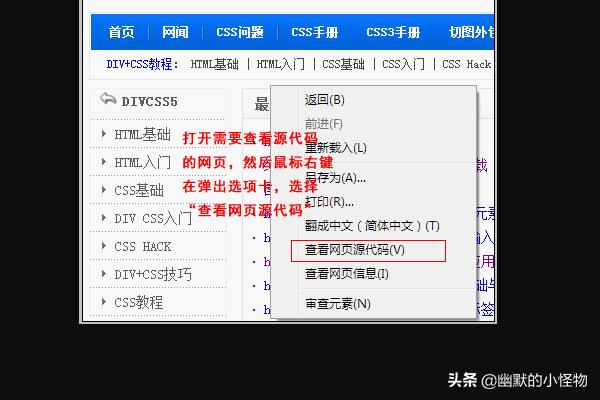 如何查看网页的源代码(HTML代码和CSS代码)?网页源代码如何查看或源文件怎么查看