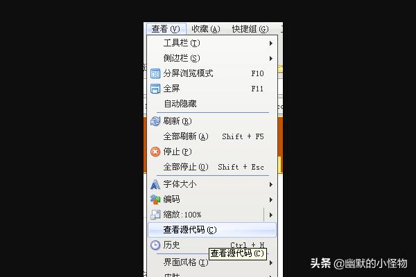 鼠标右键查看html网页源代码