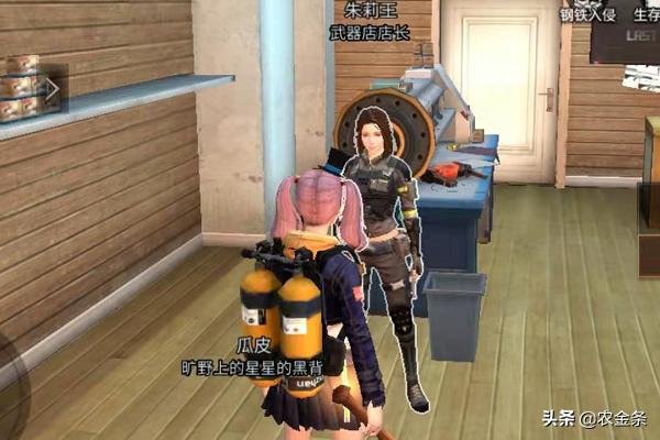 2、到营地武器店,与武器店老板对话,点击交谈。