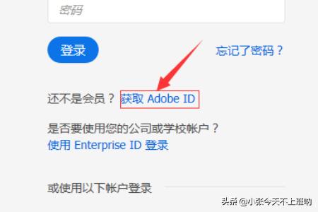 4、第一次使用,安装的时候我们需要注册一个账号,点击“获取Adobe ID“已经有账号的用户可以直接登陆。