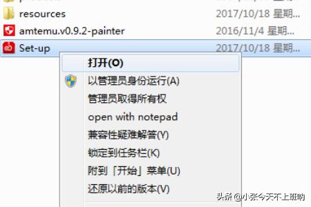 12、接着 鼠标右击amtemu.v0.9.2-painter,选择以管理员的身份运行。